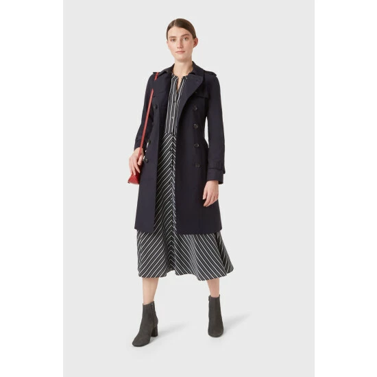 Meet Saskia, our iconic trench coat. Exquisitely designed to see you through season after season, year after year, this trench is your Mon-to-Sun style saviour. The classic details double-breasted buttons, epaulettes and storm flaps are contrasted by the subtly feminine fit and flare silhouette, for a coat which is made for the modern woman. Crafted from shower-resistant fabric.