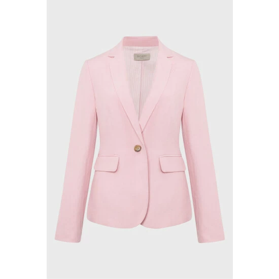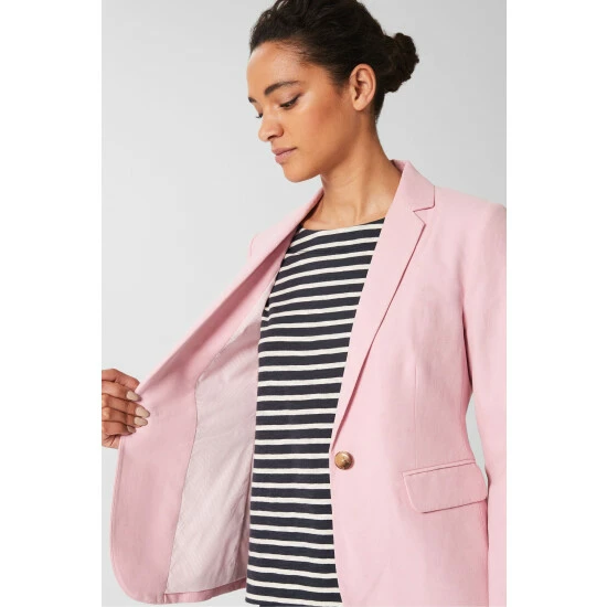 Main 53% Silk, 47% Linen. Lining 62% Cotton, 33% Nylon, 5% Elastane.